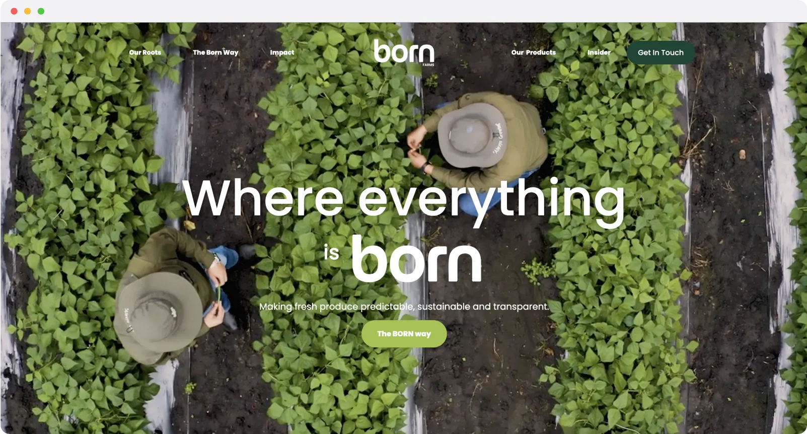 Born is a fresh produce brand by Unispice, rooted in regenerative agriculture and driven by innovation. They grow, pack, and deliver high-quality produce with full transparency and deep commitment to sustainability and predictability.